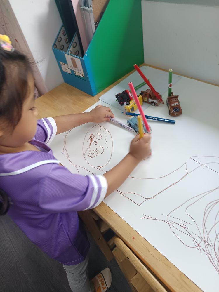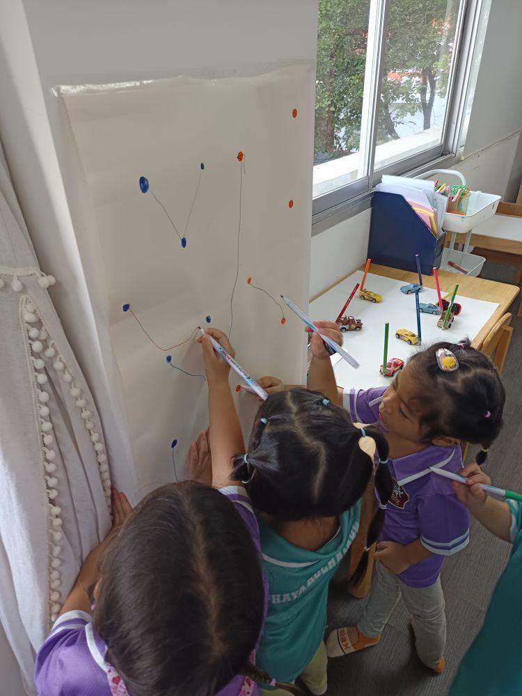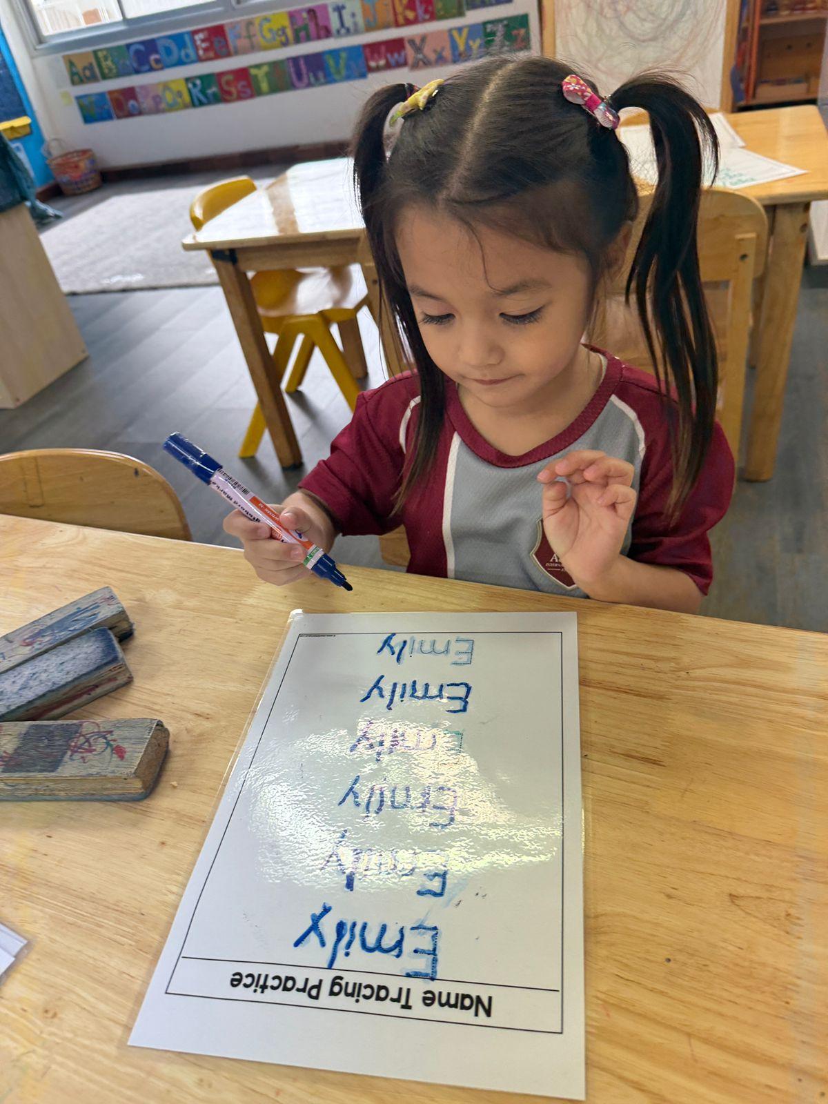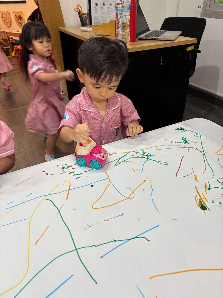 By working on these skills in a playful environment, children also grow in social and emotional ways. They share their marks with friends, talk about their drawings, and reflect on what they created. This supports our vision of raising learners who are principled, reflective, and world-ready.